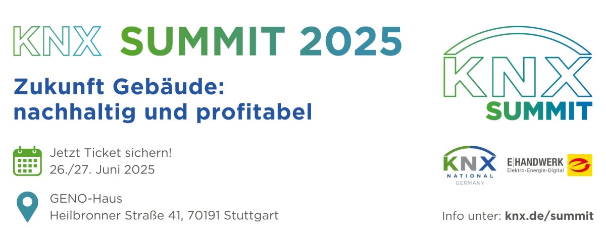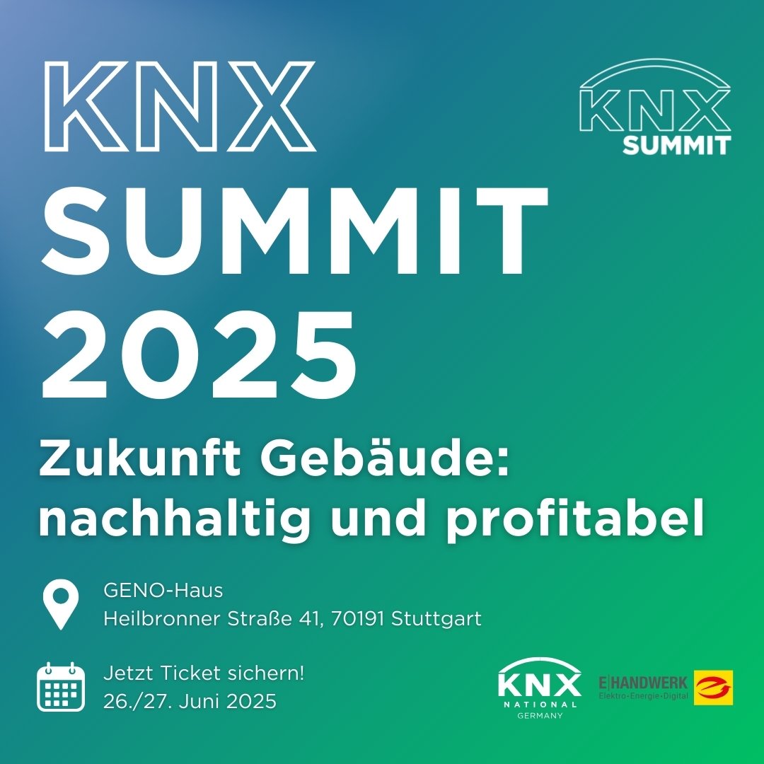 Der Countdown läuft: Am 26. und 27. Juni 2025 trifft sich die Branche im GENO-Haus Stuttgart zum KNX Summit 25. Unter dem Leitmotto „Zukunft Gebäude: nachhaltig und profitabel“ beleuchtet die Veranstaltung zentrale Herausforderungen und Chancen der Bau- und Gebäudetechnikbranche – und zeigt auf, wie sich smarte Lösungen mit KNX wirtschaftlich und zukunftssicher umsetzen lassen.